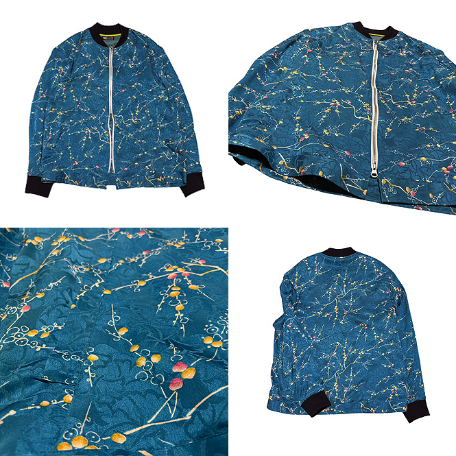JK-251086 A切替JK-3rd COL:TRQ SIZE:L/着丈:65cm、身巾:61cm、袖丈:63cm MTL:アンティーク着物/正絹100%(日本製) ¥42,900(TAXin) All handmade in Tokyo Japan