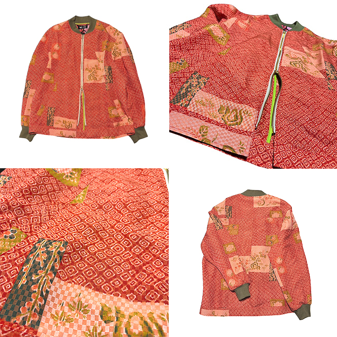 JK-251088 A切替JK-3rd COL:朱色梅模様 SIZE:L/着丈:65cm、身巾:61cm、袖丈:63cm MTL:アンティーク着物/正絹100%(日本製) ¥42,900(TAXin) All handmade in Tokyo Japan