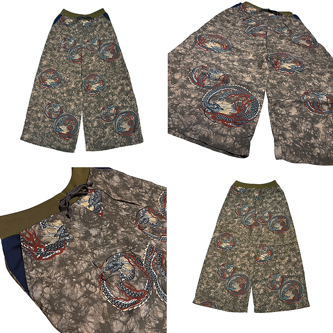 PT-251090 Wide-leg pants COL:龍 SIZE:S~M/W:66~80cm、H:106cm、L:92cm MTL:アンティーク着物/正絹100%(日本製) ¥22,000(TAXin) All handmade in Tokyo Japan