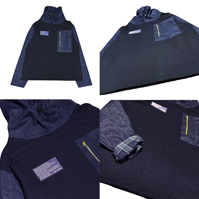 JK-2511108 SUPER Hi-NECK COL:NVY SIZE:L/Length: 66cm, Width: 120cm, Sleeve length: 63cm MTL:COTTON TWEED/DENIM/100%COTTON(JPN) PRT:Drawcord & stopper, YKK/"Excella" Made in Japan ¥35,200(TAXin) All handmade in Tokyo