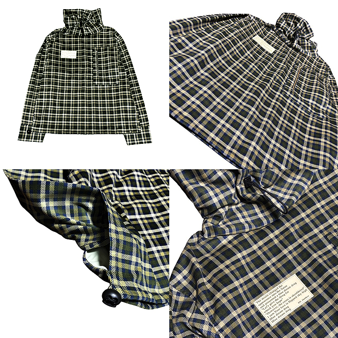 JK-2511107 SUPER Hi-NECK COL:GRN/CHK SIZE:L/Length: 66cm, Width: 120cm, Sleeve length: 63cm MTL:Corduroy/100%COTTON(JPN) PRT:Drawcord & stopper, YKK/"Excella" Made in Japan ¥35,200(TAXin) All handmade in Tokyo