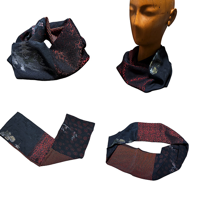 SN-260104 Snood COL:大正ロマン黒系 SIZE:幅:17cm、高さ:137cm MTL:100%正絹Antique kimono remade ¥16,500(TAXin) All handmade in Tokyo Japan